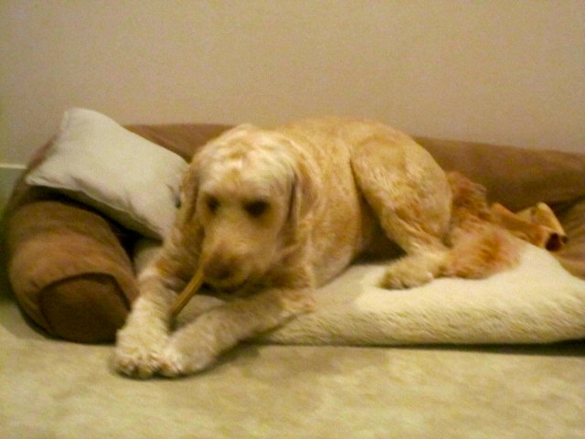 I LOVE MONTYYYYYYYYYY - action shot of him eating his bone